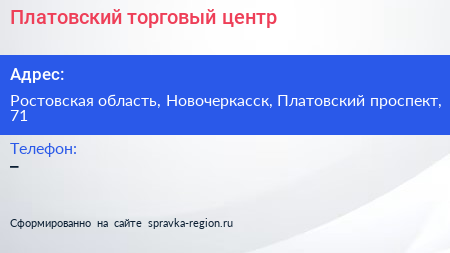 Платовский, торговый центр по адресу Ростовская область, Новочеркасск, Платовский проспект, 71 в дальнейшем Организация, размещена в следующих категориях:
