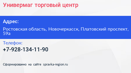 Универмаг, торговый центр по адресу Ростовская область, Новочеркасск, Платовский проспект, 59а в дальнейшем Организация, размещена в следующих категориях: