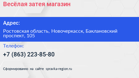 Весёлая затея, магазин по адресу Ростовская область, Новочеркасск, Баклановский проспект, 105 в дальнейшем Организация, размещена в следующих категориях: