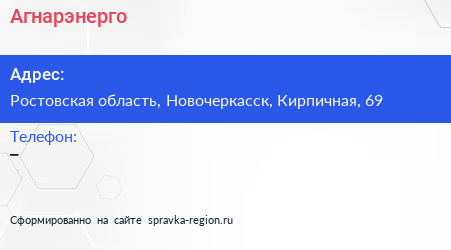 Агнарэнерго по адресу Ростовская область, Новочеркасск, Кирпичная, 69 в дальнейшем Организация, размещена в следующих категориях: