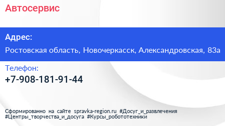 Автосервис по адресу Ростовская область, Новочеркасск, Александровская, 83а в дальнейшем Организация, размещена в следующих категориях:
