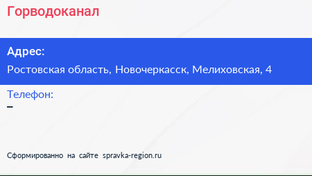 Горводоканал по адресу Ростовская область, Новочеркасск, Мелиховская, 4 в дальнейшем Организация, размещена в следующих категориях: