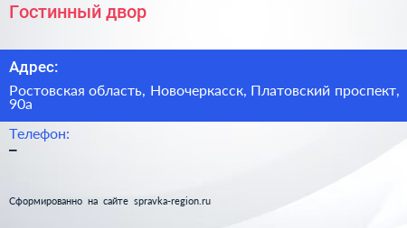 Гостинный двор по адресу Ростовская область, Новочеркасск, Платовский проспект, 90а в дальнейшем Организация, размещена в следующих категориях:
