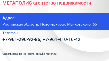 МЕГАПОЛИС, агентство недвижимости по адресу Ростовская область, Новочеркасск, Маяковского, 66 в дальнейшем Организация, размещена в следующих категориях: