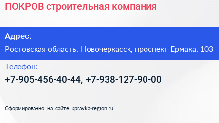 ПОКРОВ, строительная компания по адресу Ростовская область, Новочеркасск, проспект Ермака, 103 в дальнейшем Организация, размещена в следующих категориях:
