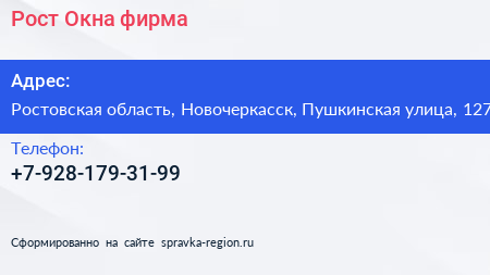 Рост-Окна, фирма по адресу Ростовская область, Новочеркасск, Пушкинская улица, 127 в дальнейшем Организация, размещена в следующих категориях: