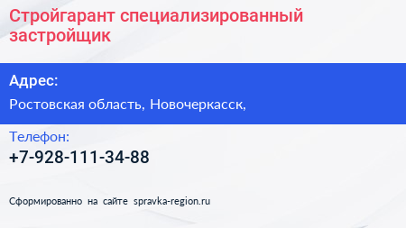 Стройгарант, специализированный застройщик по адресу Ростовская область, Новочеркасск, в дальнейшем Организация, размещена в следующих категориях: