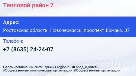 Тепловой район №7 по адресу Ростовская область, Новочеркасск, проспект Ермака, 37 в дальнейшем Организация, размещена в следующих категориях: