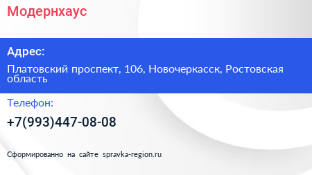 Модернхаус по адресу Платовский проспект, 106, Новочеркасск, Ростовская область в дальнейшем Организация, размещена в следующих категориях: