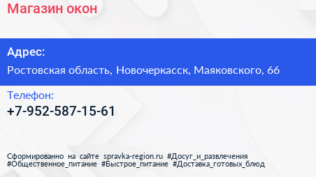 Магазин окон по адресу Ростовская область, Новочеркасск, Маяковского, 66 в дальнейшем Организация, размещена в следующих категориях:
