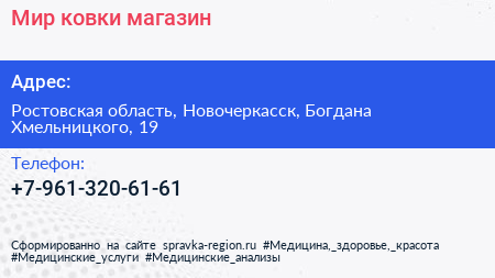 Мир ковки, магазин по адресу Ростовская область, Новочеркасск, Богдана Хмельницкого, 19 в дальнейшем Организация, размещена в следующих категориях: