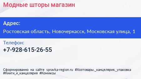Модные шторы, магазин по адресу Ростовская область, Новочеркасск, Московская улица, 1 в дальнейшем Организация, размещена в следующих категориях: