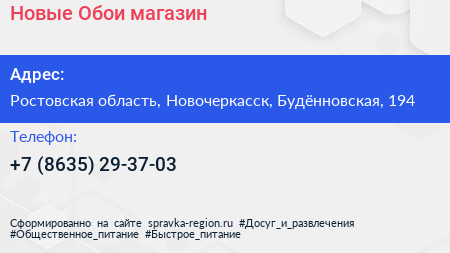 Новые Обои, магазин по адресу Ростовская область, Новочеркасск, Будённовская, 194 в дальнейшем Организация, размещена в следующих категориях: