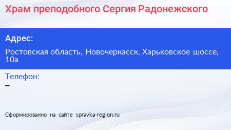 Храм преподобного Сергия Радонежского по адресу Ростовская область, Новочеркасск, Харьковское шоссе, 10а в дальнейшем Организация, размещена в следующих категориях: