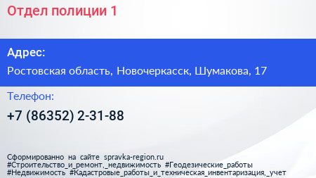 Отдел полиции №1 по адресу Ростовская область, Новочеркасск, Шумакова, 17 в дальнейшем Организация, размещена в следующих категориях: