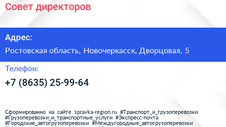 Совет директоров по адресу Ростовская область, Новочеркасск, Дворцовая, 5 в дальнейшем Организация, размещена в следующих категориях: