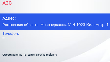 АЗС по адресу Ростовская область, Новочеркасск, М-4 1023 Километр, 1 в дальнейшем Организация, размещена в следующих категориях:
