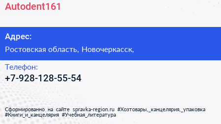 Autodent161 по адресу Ростовская область, Новочеркасск, в дальнейшем Организация, размещена в следующих категориях: