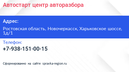 Автостарт, центр авторазбора по адресу Ростовская область, Новочеркасск, Харьковское шоссе, 1д/1 в дальнейшем Организация, размещена в следующих категориях: