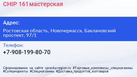 CHIP-161, мастерская по адресу Ростовская область, Новочеркасск, Баклановский проспект, 97/1 в дальнейшем Организация, размещена в следующих категориях:
