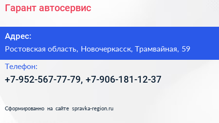 Гарант, автосервис по адресу Ростовская область, Новочеркасск, Трамвайная, 59 в дальнейшем Организация, размещена в следующих категориях: