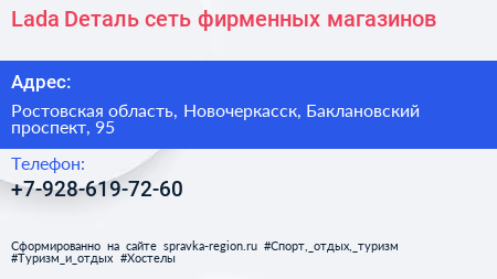 Lada Dеталь, сеть фирменных магазинов по адресу Ростовская область, Новочеркасск, Баклановский проспект, 95 в дальнейшем Организация, размещена в следующих категориях: