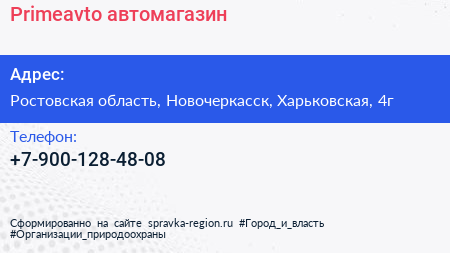Primeavto, автомагазин по адресу Ростовская область, Новочеркасск, Харьковская, 4г в дальнейшем Организация, размещена в следующих категориях: