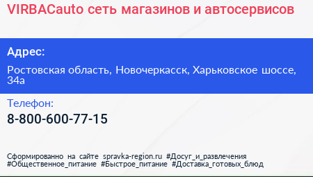 VIRBACauto, сеть магазинов и автосервисов по адресу Ростовская область, Новочеркасск, Харьковское шоссе, 34а в дальнейшем Организация, размещена в следующих категориях: