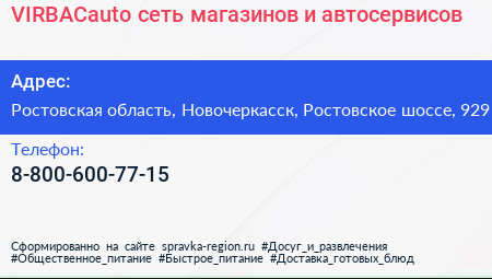 VIRBACauto, сеть магазинов и автосервисов по адресу Ростовская область, Новочеркасск, Ростовское шоссе, 929 в дальнейшем Организация, размещена в следующих категориях: