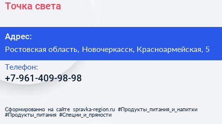 Точка света по адресу Ростовская область, Новочеркасск, Красноармейская, 5 в дальнейшем Организация, размещена в следующих категориях:
