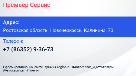 Премьер-Сервис по адресу Ростовская область, Новочеркасск, Калинина, 73 в дальнейшем Организация, размещена в следующих категориях: