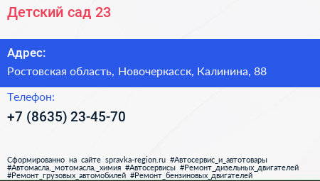 Детский сад №23 по адресу Ростовская область, Новочеркасск, Калинина, 88 в дальнейшем Организация, размещена в следующих категориях: