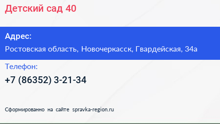 Детский сад №40 по адресу Ростовская область, Новочеркасск, Гвардейская, 34а в дальнейшем Организация, размещена в следующих категориях: