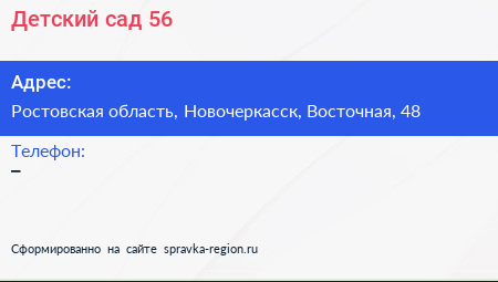 Детский сад №56 по адресу Ростовская область, Новочеркасск, Восточная, 48 в дальнейшем Организация, размещена в следующих категориях: