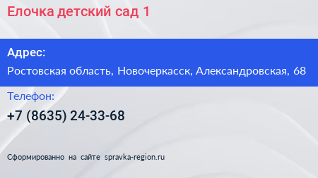 Елочка, детский сад №1 по адресу Ростовская область, Новочеркасск, Александровская, 68 в дальнейшем Организация, размещена в следующих категориях: