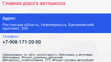 Главная дорога, автошкола по адресу Ростовская область, Новочеркасск, Баклановский проспект, 104 в дальнейшем Организация, размещена в следующих категориях:
