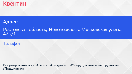 Квентин по адресу Ростовская область, Новочеркасск, Московская улица, 47Б/1 в дальнейшем Организация, размещена в следующих категориях: