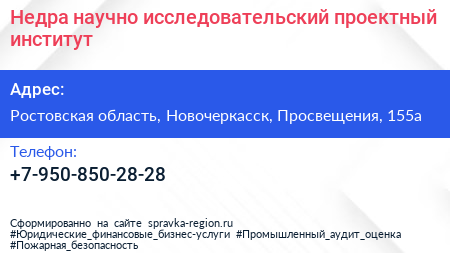 Недра, научно-исследовательский проектный институт по адресу Ростовская область, Новочеркасск, Просвещения, 155а в дальнейшем Организация, размещена в следующих категориях: