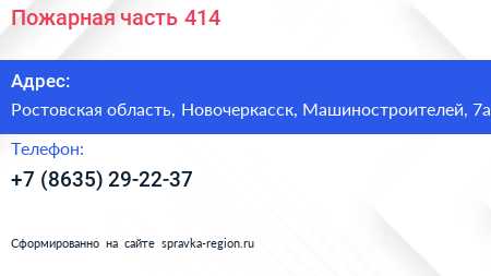 Пожарная часть №414 по адресу Ростовская область, Новочеркасск, Машиностроителей, 7а в дальнейшем Организация, размещена в следующих категориях: