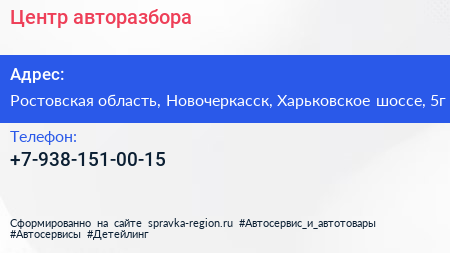 Центр авторазбора по адресу Ростовская область, Новочеркасск, Харьковское шоссе, 5г в дальнейшем Организация, размещена в следующих категориях: