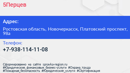 5Перцев по адресу Ростовская область, Новочеркасск, Платовский проспект, 98а в дальнейшем Организация, размещена в следующих категориях: