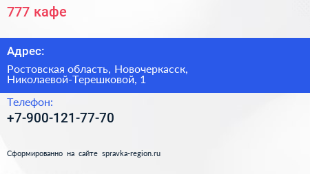 777, кафе по адресу Ростовская область, Новочеркасск, Николаевой-Терешковой, 1 в дальнейшем Организация, размещена в следующих категориях: