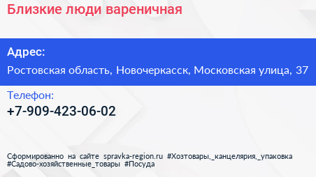 Близкие люди, вареничная по адресу Ростовская область, Новочеркасск, Московская улица, 37 в дальнейшем Организация, размещена в следующих категориях: