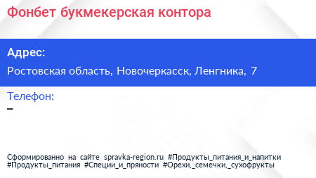 Фонбет, букмекерская контора по адресу Ростовская область, Новочеркасск, Ленгника, 7 в дальнейшем Организация, размещена в следующих категориях: