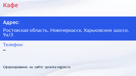Кафе по адресу Ростовская область, Новочеркасск, Харьковское шоссе, 9а/3 в дальнейшем Организация, размещена в следующих категориях: