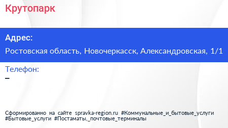 Крутопарк по адресу Ростовская область, Новочеркасск, Александровская, 1/1 в дальнейшем Организация, размещена в следующих категориях: