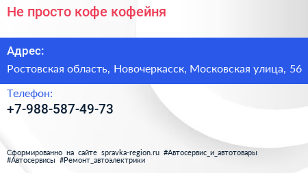 Не просто кофе, кофейня по адресу Ростовская область, Новочеркасск, Московская улица, 56 в дальнейшем Организация, размещена в следующих категориях: