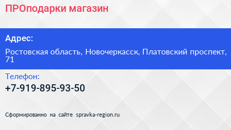 ПРОподарки, магазин по адресу Ростовская область, Новочеркасск, Платовский проспект, 71 в дальнейшем Организация, размещена в следующих категориях: