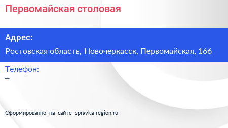 Первомайская, столовая по адресу Ростовская область, Новочеркасск, Первомайская, 166 в дальнейшем Организация, размещена в следующих категориях:
