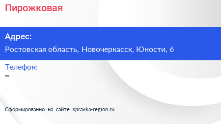 Пирожковая по адресу Ростовская область, Новочеркасск, Юности, 6 в дальнейшем Организация, размещена в следующих категориях: